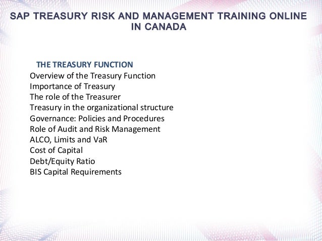 An Overview of SAP Treasury . There is a comprehensive risk management system in SAP treasury which is going to . We basically are using FSCM TRM for .. SAP TREASURY MANAGEMENT GOOD . The role of derivatives in risk management Managing . SAP TRM Training SAP Treasury and Risk Management .